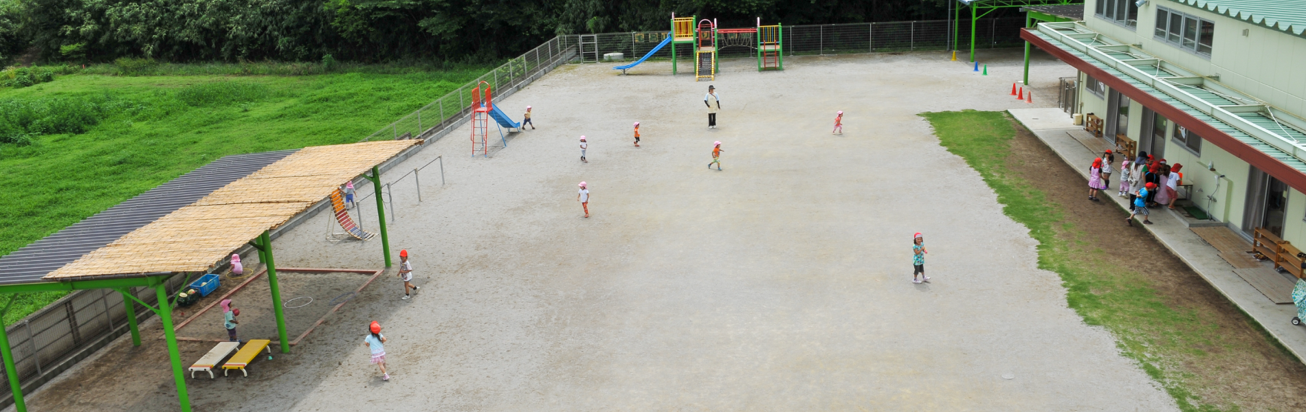 また、おかげ様で平成23年4月に、この地に新築移転し、広大な敷地でのびのびと保育を行っております。